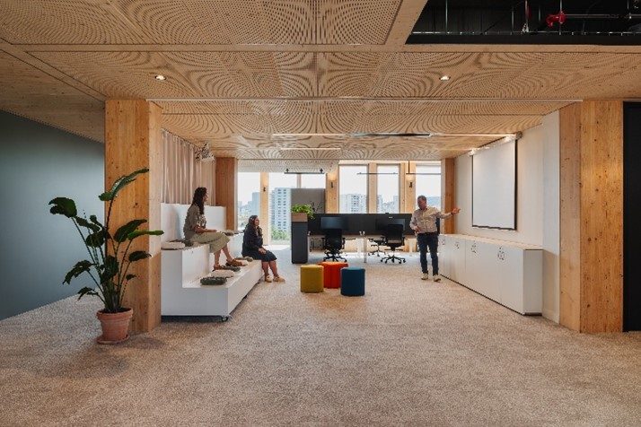 Les équipes design, mobilier et travaux de ARCH.DESIGN ont travaillé à toutes les étapes du projet pour concevoir et réaliser un environnement de travail durable avec une empreinte environnementale réduite.