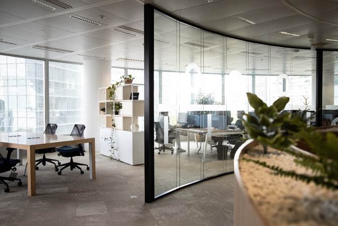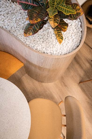 Les matériaux, les couleurs ont été choisis pour incarner la culture de l’entreprise. Un soin particulier a été apporté à la décoration. Coussins, luminaires, tableaux aux murs apportent l’ambiance souhaitée. Quelques plantes végétalisent l’espace.