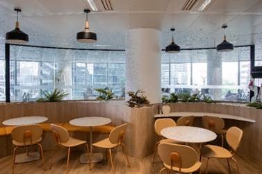Pour la dimension convivialité, un espace central généreux a été pensé. Il sert à la pause déjeuner mais a également beaucoup de succès en fin de journée.